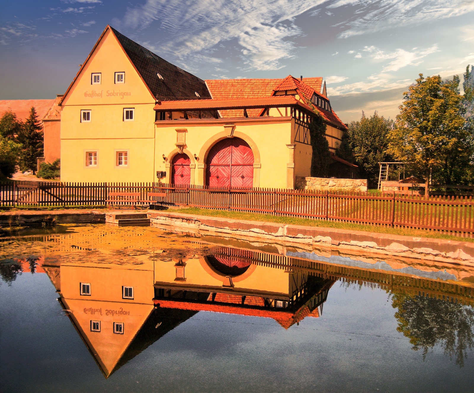 Im Jahr 2004 haben wir den historischen Dreiseitenhof in Sobrigau entdeckt. Obwohl schon recht verfallen, strahlte der Hof sowohl eine stolze Geschichte, als auch eine romantische, etwas morbide Vergänglichkeit aus und wartete darauf, wieder zum Leben erweckt zu werden.
