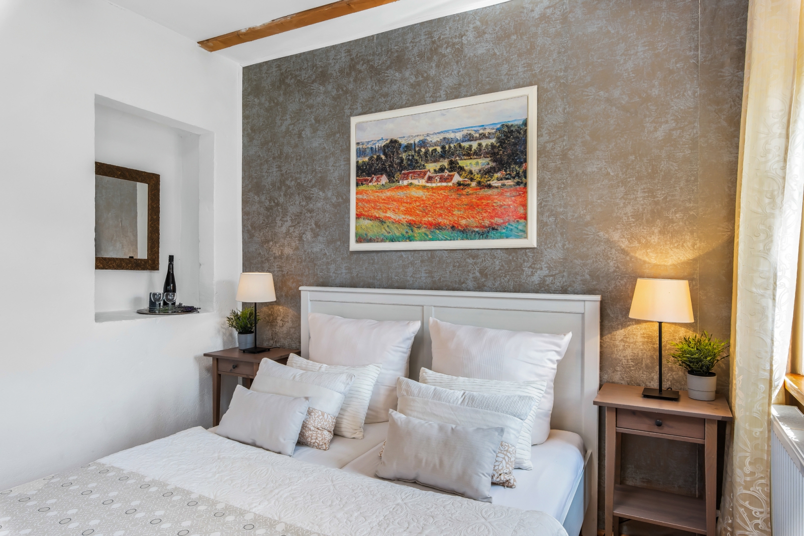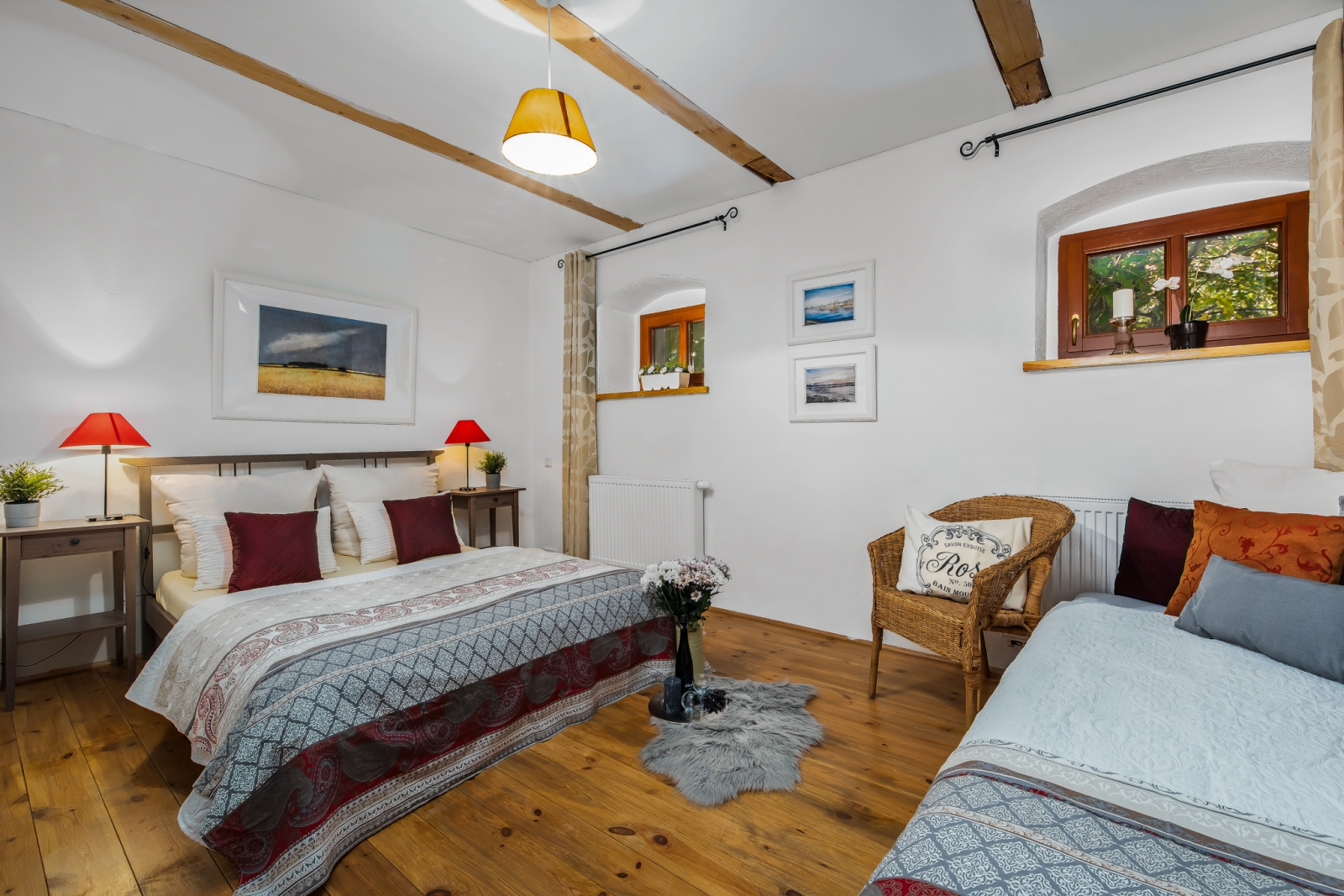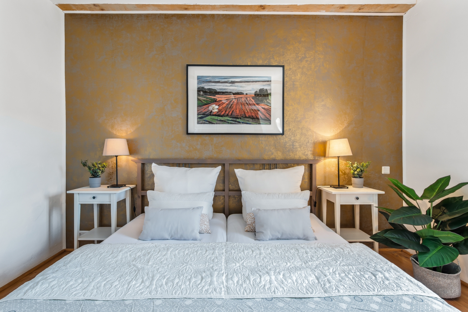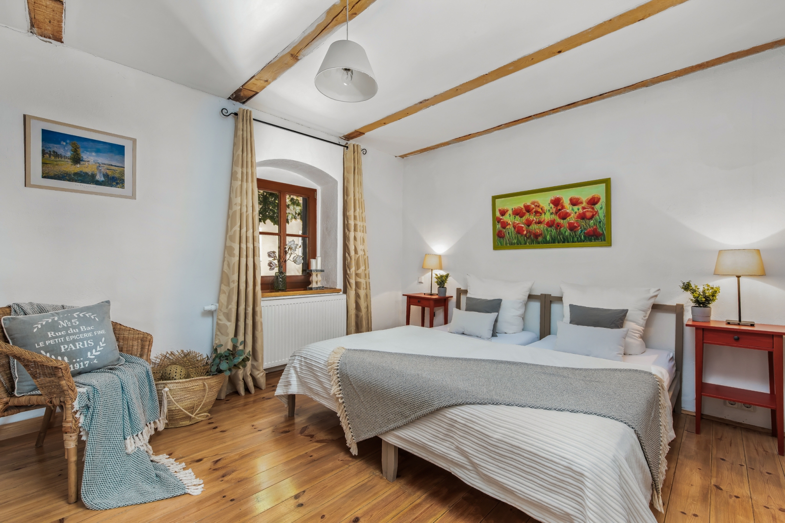 Auf unserem historischen, alten Bauernhof bieten wir Ihnen ein liebevoll restauriertes Ferienhaus für 10 bis 12 Personen an. Sechs Doppelschlafzimmer mit viel Flair und Liebe zum Detail verteilen sich auf 210 m². Im Erdgeschoss befinden sich eine voll ausgestattete Küche und ein Esszimmer für 12 Personen. Das Wohnzimmer verfügt über einen Kamin für romantische Stunden. Drei WCs und zwei großzügige Bäder stehen unseren Gästen zur Verfügung, im Erdgeschoss mit Badewanne, Dusche, Doppelwaschtischen, im Obergeschoss mit Dusche und Doppelwaschtisch. Ausreichend Handtücher und Duschtücher liegen für Sie bereit. Ein komplett umzäunter Garten mit Terrasse lädt ein zum Relaxen oder Grillen. Die Sonnenterrasse ist mit gemütlichen Holzmöbeln und Sonnenschirmen für zwölf Personen möbliert. Das Haus Luise befindet sich zusammen mit Haus Clara auf einem Grundstück. Im Haus ist kostenfreier WLAN-Zugang, Kabel-TV, DVD-Player, Radio und CD.