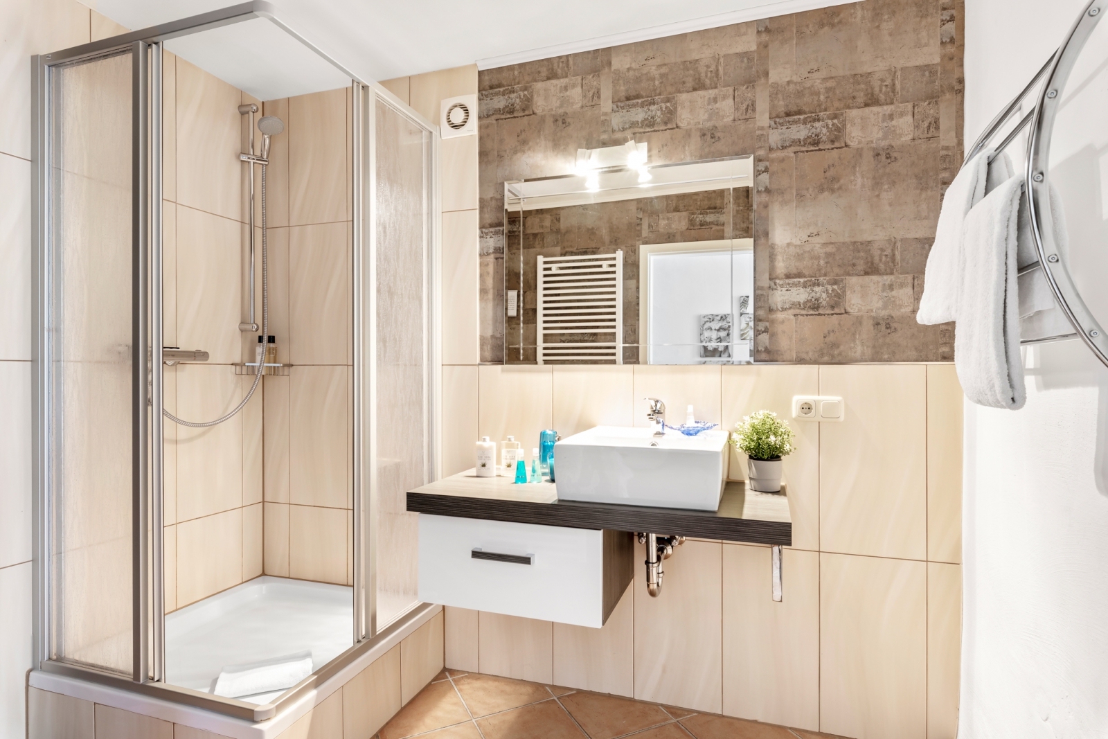 Bad: 1. Duschbad mit Waschtisch, Fön und 1 WC im EG, 2. Duschbad mit Waschtisch und 2. WC im OG Fön
