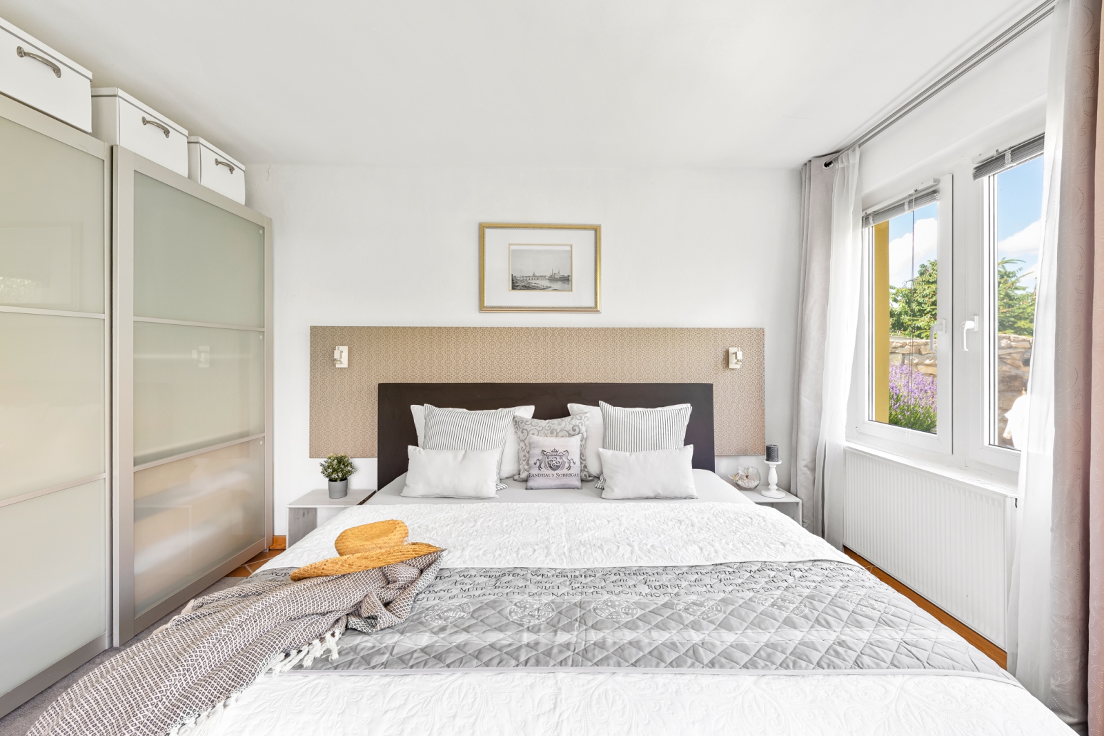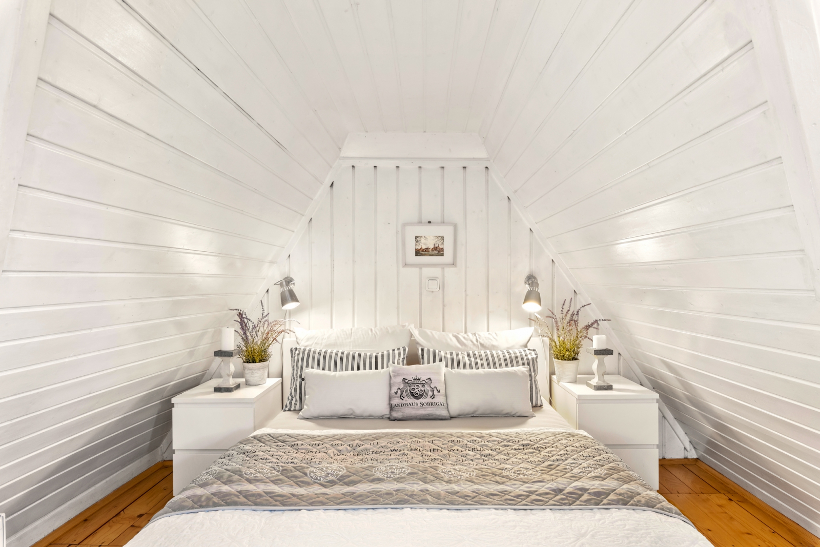 Erstes DZ im Erdgeschoss mit Boxspringbett - Zweites DZ im Obergeschoss und drittes DZ im Dachgeschoss mit Schräge. Im Obergeschoss gibt es im Flur einen kleinen Alkoven mit einem Stockbett für 2 Kinder. Im Erdgeschoss befinden sich eine sehr große voll ausgestattete Küche, ein geräumiges Esszimmer im Wintergarten und das Wohnzimmer mit TV und Kaminofen. Ein Bad mit Dusche mit getrenntem WC befindet sich im Erdgeschoss und ein 2. Bad mit Dusche und getrenntem WC befindet sich im Obergeschoss. Handtücher und Bettwäsche von der Wäscherei Reichel können gerne dazugebucht werden. Das Haus Sofie hat eine Terrasse im Innenhof und eine weitere Terrasse im Garten mit einer überdachten Lounge Ecke, einem Strandkorb und einer Grillecke.