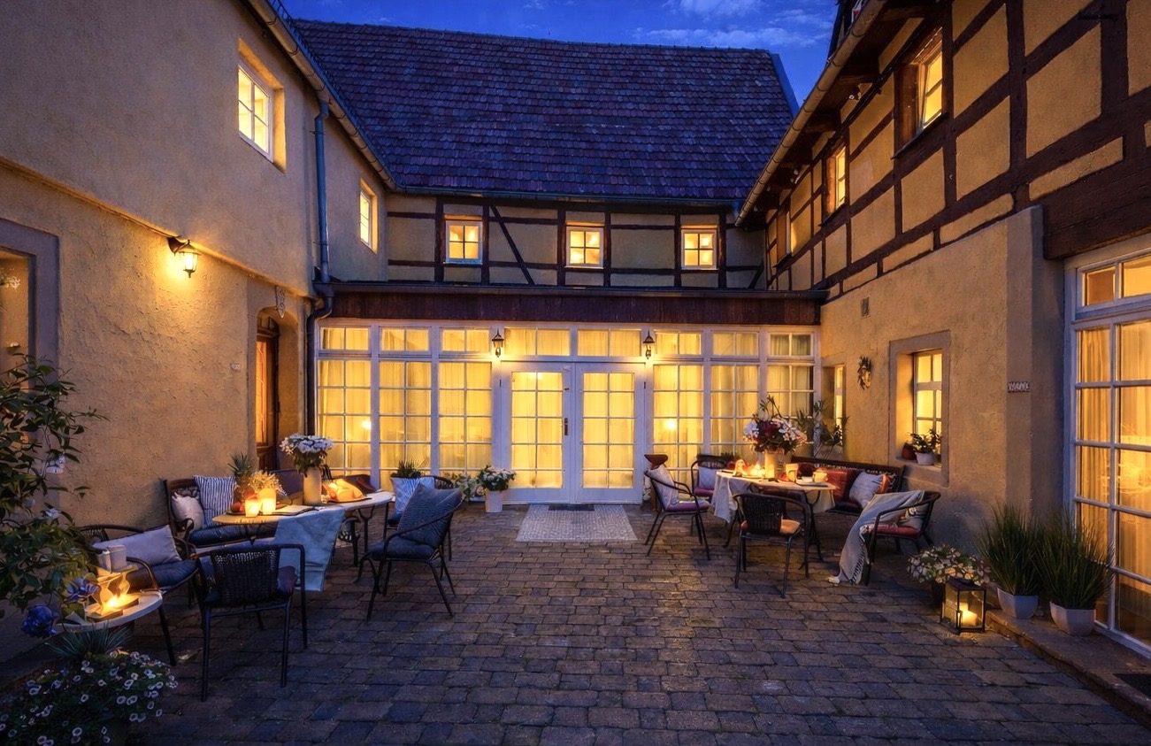 Das Haus Sofie liegt gegenüber von Haus Anna innerhalb des Dreiseitenhofs. Auf Wunsch können auch beide Häuser zusammen gebucht werden.