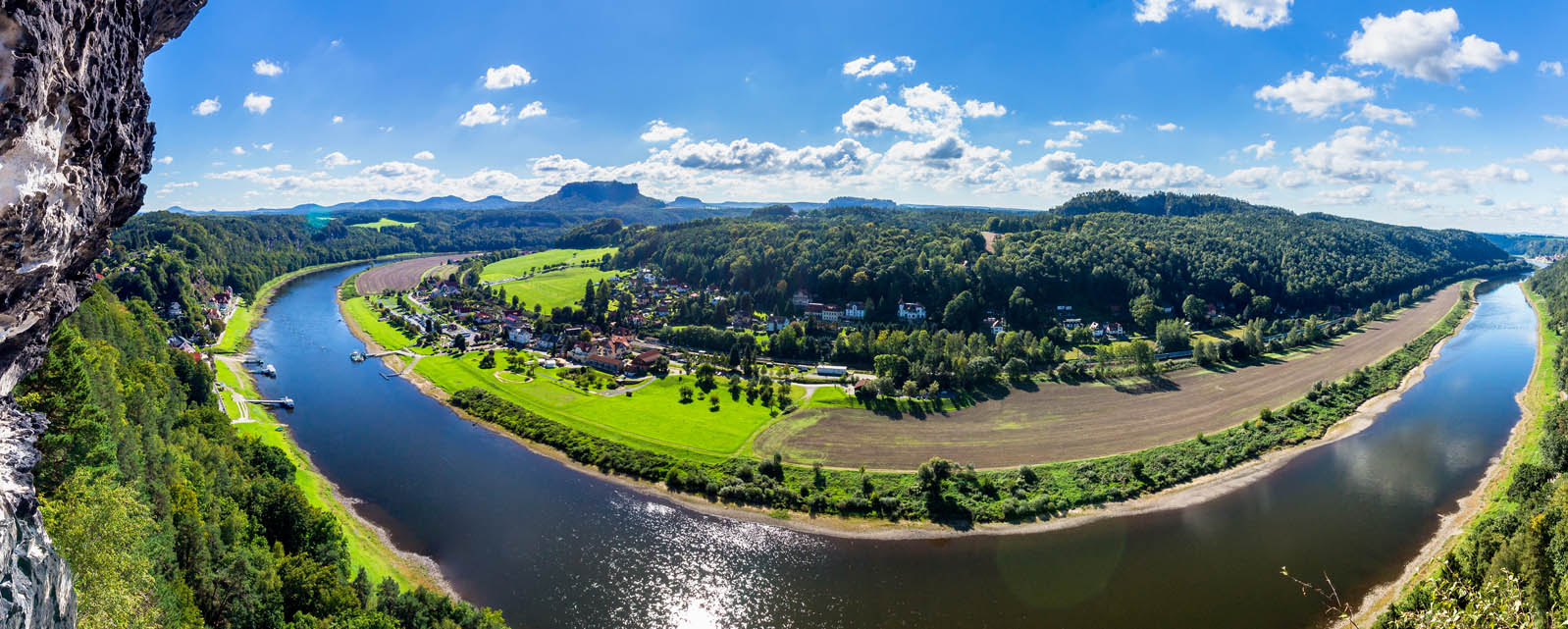 Die Basteibrücke ist die berühmteste Touristenattraktion der Sächsischen Schweiz. Weltbekannt ist der Blick über das Elbtal auf die Tafelberge der Sächsischen Schweiz bis weit in die benachbarte Landschaft des Lausitzer Berglandes und des Osterzgebirges. In einer Entfernung von 130 m und in einer Höhe von 194 m über dem Elbspiegel bietet sich dem Betrachter auf dem Sandsteinplateau ein unvergesslicher Blick. Die Basteiaussicht ist ganzjährig frei zugängig.